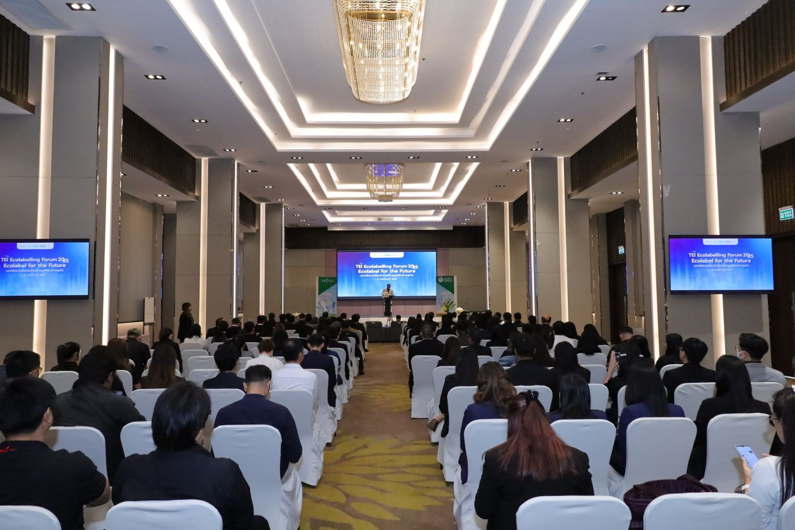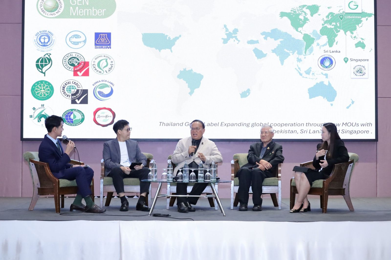 สำหรับกิจกรรมภายในงาน ยังได้เปิดเวทีเสวนาในหัวข้อ “ทิศทางฉลากสิ่งแวดล้อมของโลก โอกาสทางธุรกิจใหม่ และการจัดซื้อสีเขียว” ซึ่งมีผู้ทรงคุณวุฒิจากภาคส่วนต่างๆ ทั้งภาควิชาการ โดย รศ.ดร. ธำรงรัตน์ มุ่งเจริญ ประธานมูลนิธิเพื่อส่งเสริมการผลิตและการบริโภคอย่างยั่งยืนแห่งเอเซียแปซิฟิกกรรมการบริหารสถาบันสิ่งแวดล้อมไทย ภาคธุรกิจค้าปลีก โดยคุณณพล ก่อก้องวิศรุต VP Ecosystem บริษัท โฮม โปรดักส์ เซ็นเตอร์ จำกัด (มหาชน) และภาคอุตสาหกรรมก่อสร้าง ผู้เชี่ยวชาญด้านอาคารเขียว และที่ปรึกษาโครงการ Green Building Market Transformation Consultant Thailand, International Finance Corporation มาร่วมแลกเปลี่ยนมุมมอง พร้อมพิธีมอบเกียรติบัตร เพื่อเชิดชูเกียรติแก่ผู้ประกอบการที่มุ่งมั่นดำเนินงานจนได้รับการรับรองมาตรฐานฉลากสิ่งแวดล้อม ได้แก่ ฉลากเขียว ฉลากผลิตภัณฑ์หมุนเวียน (Circular Mark) ฉลากข้อมูลสิ่งแวดล้อมของผลิตภัณฑ์ (EPD) และ Inno-Green Station ประจำปี 2567-2568 รวมทั้งสิ้น 70 บริษัท