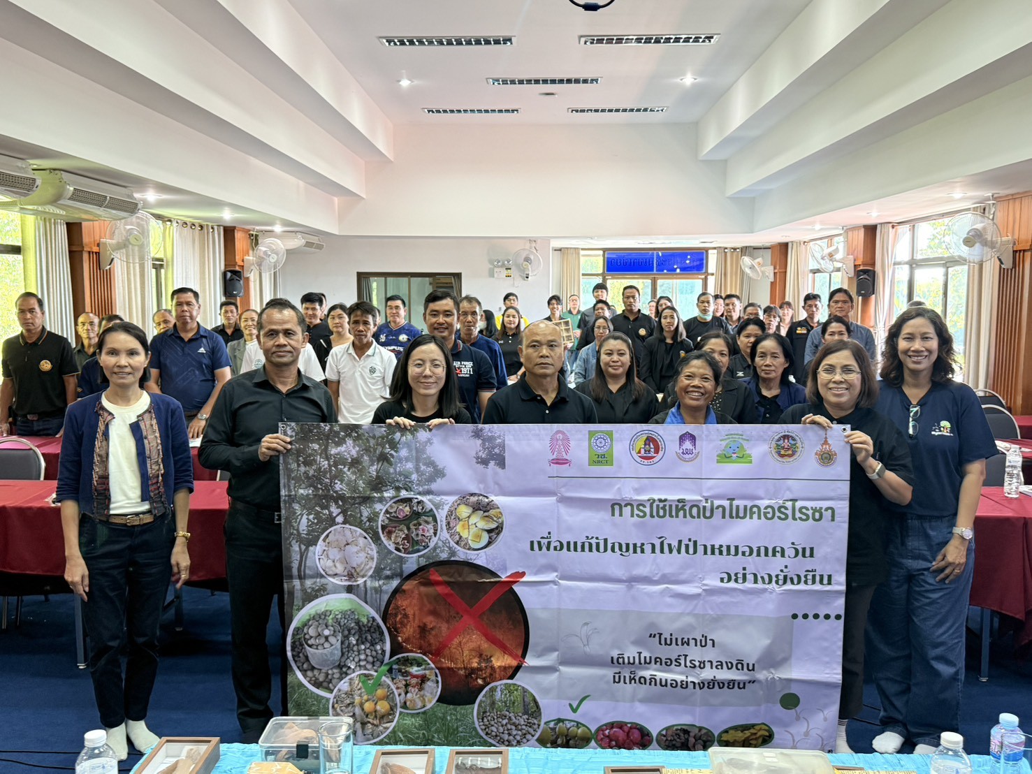 TEI ร่วมกับเทศบาลตำบลครึ่ง อำเภอเชียงของ และคณะวิทยาศาสตร์ จุฬาลงกรณ์มหาวิทยาลัยยกระดับความร่วมมือนำนวัตกรรมสู่รูปธรรมแก้ปัญหาการเผาไฟป่าและหมอกควันด้วยเห็ดป่าไมคอร์ไรซา (In Thai)