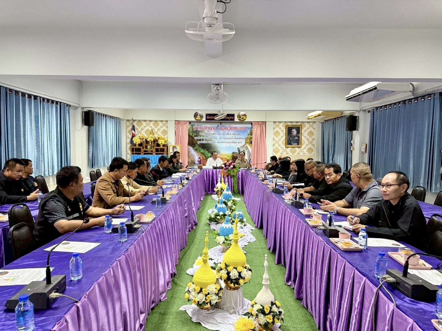 คณะผู้นำจากเมืองคอบ ร่วมกิจกรรม ได้แก่ ท่านสมัคร ลิดสะถาน รองประธานคณะกรรมการปกครองเมือง เมืองคอบ แขวงไชยะบุลี สปป.ลาว และเจ้าหน้าที่ส่วนงานเกี่ยวข้องด้านกสิกรรมและสิ่งแวดล้อม นายบ้าน พร้อมด้วย เจ้าหน้าที่งานความมั่นคง ผู้นำท้องที่ ป่าไม้ อำเภอภูซาง ทรัพยากรธรรมชาติและสิ่งแวดล้อม จังหวัดพะเยา เข้าร่วมการแลกเปลี่ยนข้อมูลและสถานการณ์ด้านการจัดการหมอกควันไฟป่า การดำเนินการป้องกันและควบคุมไฟป่าและหมอกควันตามนโยบายและมาตรการของแต่ละพื้นที พร้อมการศึกษาดูงานและแลกเปลี่ยนการส่งเสริมอาชีพและเกษตรลดการเผาในพื้นที่สูงวาวีแบบโครงการหลวง โดยได้รับเกียรติจากนายปฤษฎางค์ สามัคคีนิชย์ นายอำเภอแม่สรวย และนายอภิสิทธิ์ จันทร์คำ ปลัดอำเภอภูซาง ร่วมกล่าวต้อนรับคณะดูงาน