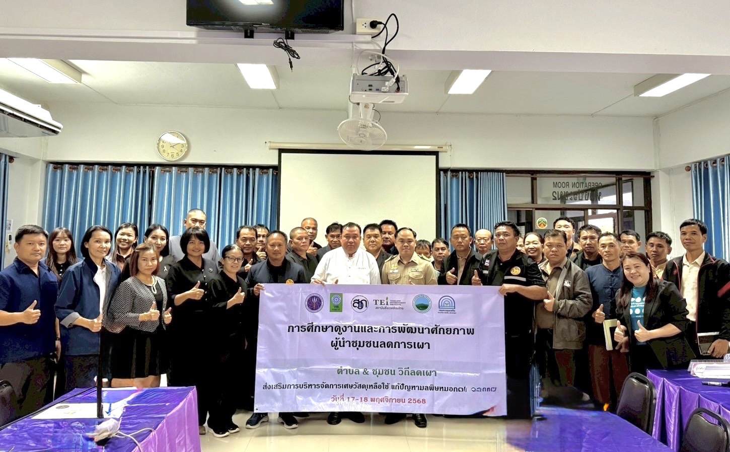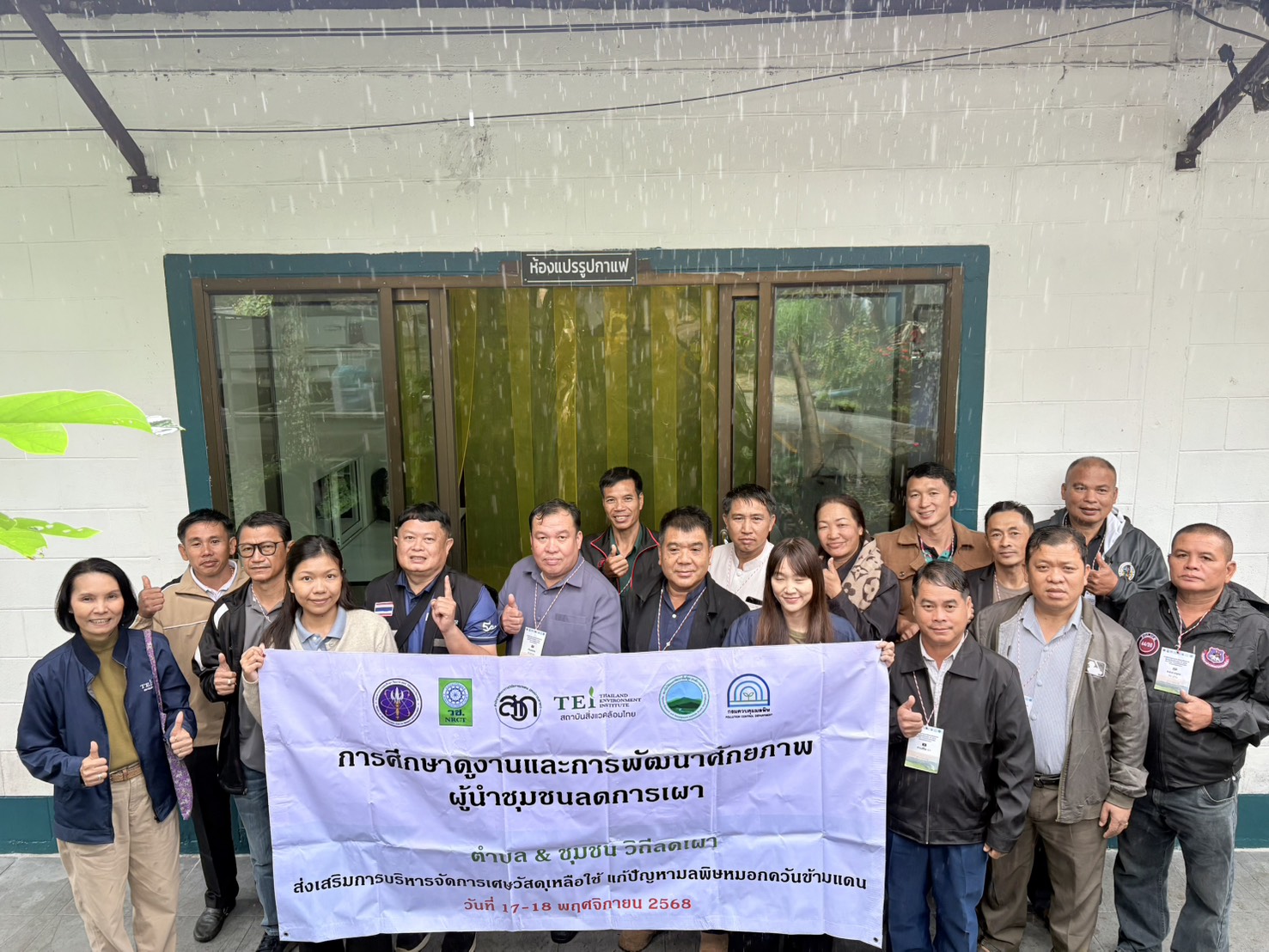 17-18 พฤศจิกายน 2568 สถาบันสิ่งแวดล้อมไทย หรือ TEI โดยโครงการพัฒนากลไกความร่วมมือขับเคลื่อนแผนปฏิบัติการร่วมยุทธศาสตร์ฟ้าใส (CLEAR Sky Strategy) และการพัฒนาความร่วมมือเมืองคู่ขนาน ไทย ลาว เมียนมา ขับเคลื่อนการจัดการและลดมลพิษหมอกควันข้ามแดน นำโดย คุณวิลาวรรณ น้อยภา หัวหน้าโครงการ และคณะนักวิจัย ร่วมกับอำเภอภูซาง จังหวัดเชียงราย สถาบันวิจัยและพัฒนาพื้นที่สูง (สวพส.) จัดการศึกษาดูงานและพัฒนาศักยภาพผู้นำชุมชนเมืองคอบ & ภูซาง จำนวน 24 คน ณ อำเภอภูซาง จังหวัดพะเยา และเกษตรที่สูงดอยวาวี อำเภอแม่สรวย จังหวัดเชียงราย