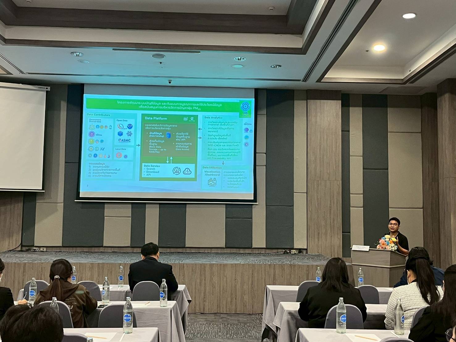 ในการนี้ได้รับเกียรติจาก ดร.ศรัณธร ภู่สิงห์ นักวิทยาศาสตร์ข้อมูล กล่าวต้อนรับและ ดร.ปฏิภาณ แสงเดือน นักวิทยาศาสตร์ข้อมูล จากสถาบันข้อมูลขนาดใหญ่ (องค์การมหาชน) แนะนำระบบข้อมูลสิ่งแวดล้อม Envi Link ภายในงานได้มีการแลกเปลี่ยนความคิดเห็นเกี่ยวกับความต้องการใช้ข้อมูลด้านการบริหารจัดการเพื่ออากาศสะอาด ร่วมกับผู้เข้าร่วม เพื่อสร้างความเข้าใจในโครงการ แลกเปลี่ยนความคิดเห็นต่อสถานการณ์และแนวทางการดำเนินงาน พร้อมทั้งรวบรวมความต้องการของผู้มีส่วนเกี่ยวข้องที่ต้องการใช้ข้อมูลด้านการบริหารจัดการเพื่ออากาศสะอาด เพื่อสนับสนุนการตัดสินใจเชิงนโยบายของผู้มีอำนาจตัดสินใจ