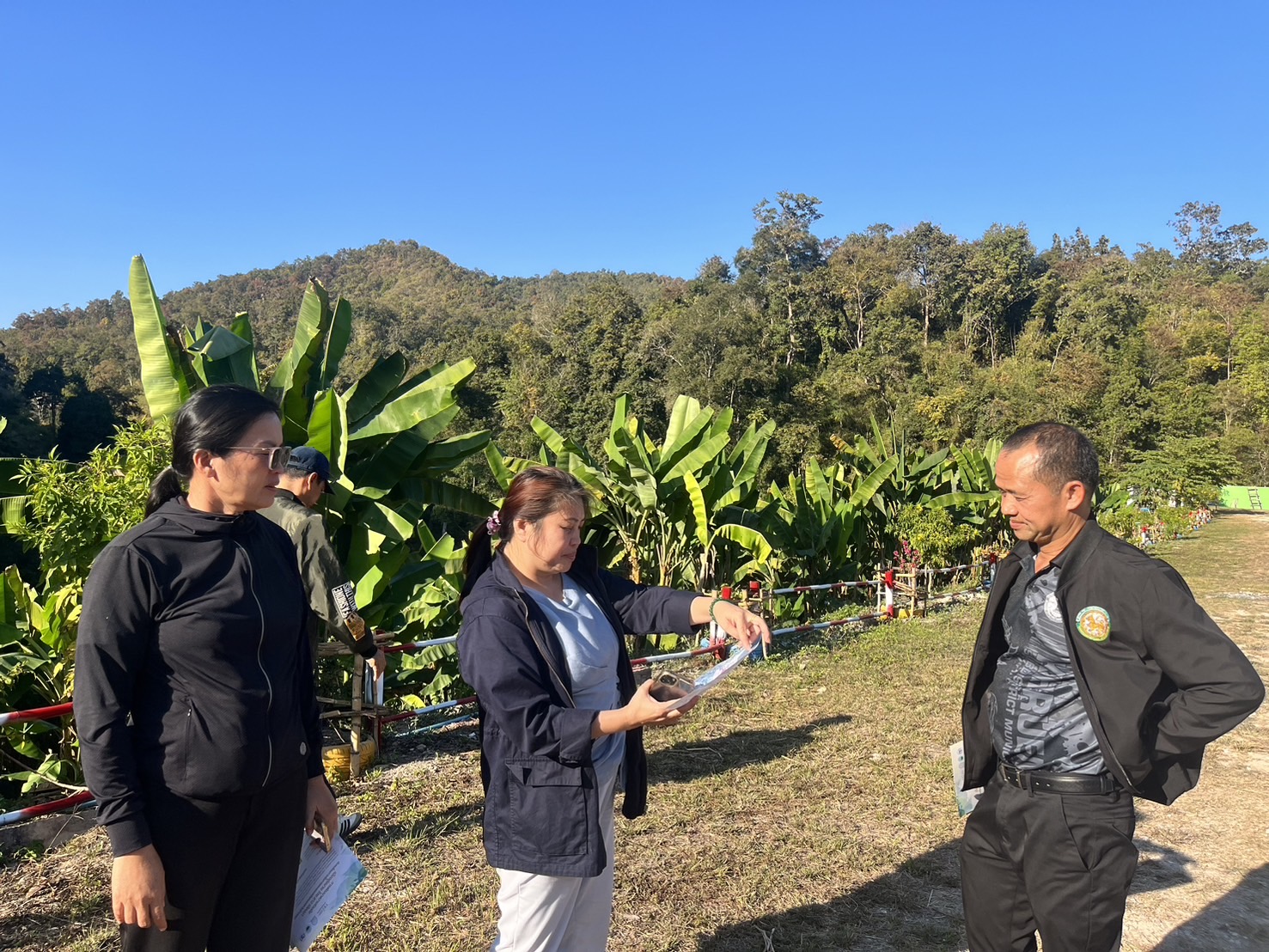 ในการนี้ นางสาววิลาวรรณ น้อยภา หัวหน้าโครงการฯ ได้มอบหมายให้ นางสาวศุภาพิชญ์ สงคำ ผู้ประสานงานโครงการ พร้อมด้วยคณะวิจัย เข้าพบนายชัชภณ ศรีอารยกุล รองนายกเทศมนตรีตำบลครึ่ง อำเภอเชียงของ จังหวัดเชียงราย เพื่อหารือแนวทางความร่วมมือในการเตรียมข้อมูลและผลงานเชิงพื้นที่ด้านการลดการเผา การจัดการปัญหาหมอกควัน และการบูรณาการการทำงานของหน่วยงานในระดับพื้นที่ เพื่อใช้เป็นส่วนหนึ่งของการจัดแสดงนิทรรศการ พร้อมสำรวจพื้นที่บริเวณดำเนินกิจกรรมฟื้นฟูป่าที่ผ่านการลงเชื้อเห็ดไมคอร์ไรซา (Mycorrhiza) เป็นแนวกันไฟและการจัดการป่าชุมชน