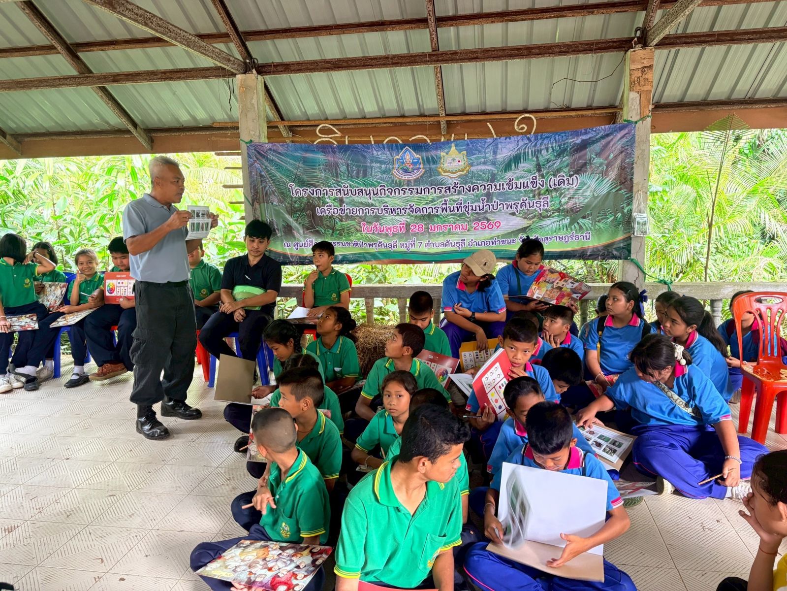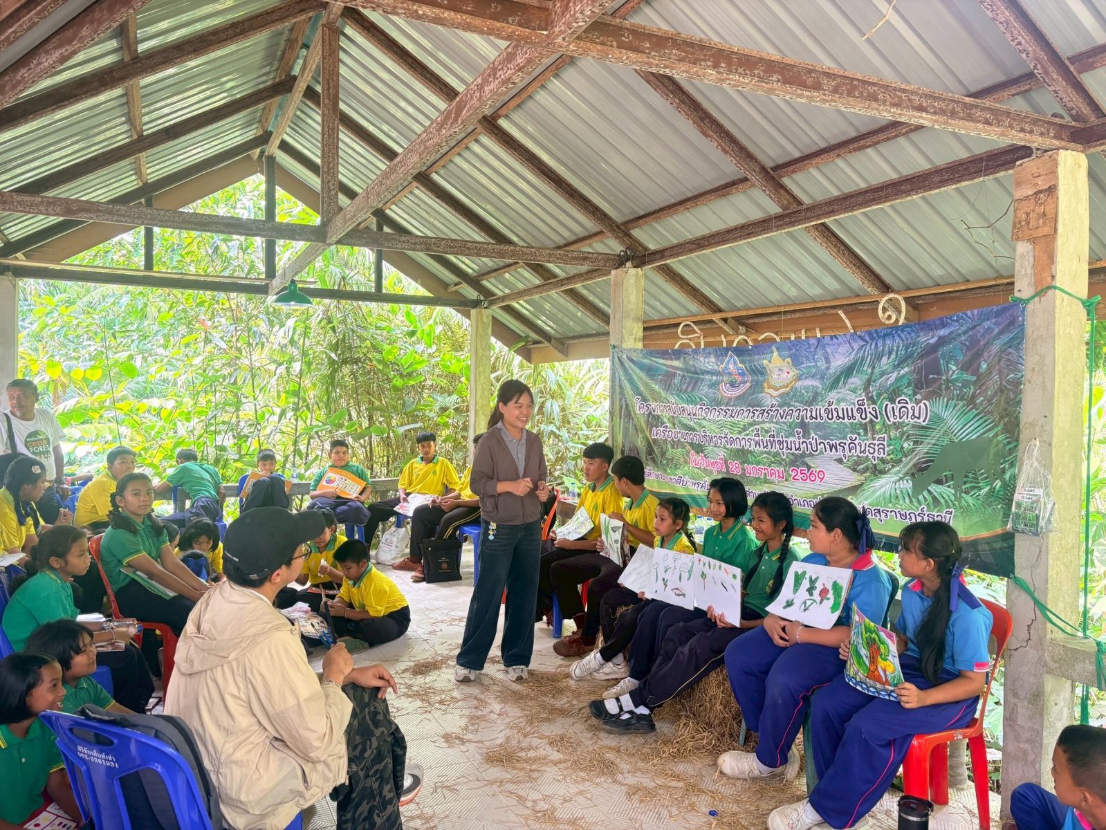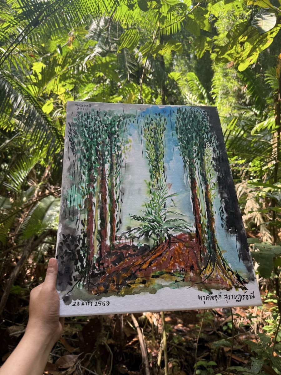 การสร้างฐานความยั่งยืนของพื้นที่ยังต้องเริ่มจากคนรุ่นใหม่ กิจกรรมเสริมสร้างการเรียนรู้และจิตสำนึกด้านการอนุรักษ์ในหัวข้อ “รู้จักป่าพรุคันธุลีผ่านงานศิลป์” จึงถูกออกแบบควบคู่กับกระบวนการเชิงนโยบาย ในรูปแบบ สำรวจ–เรียนรู้–สนุก เพื่อทำความเข้าใจความหลากหลายทางชีวภาพของป่าพรุคันธุลี ทั้งพืชและสัตว์ที่มีความสำคัญและพบเฉพาะถิ่น ก่อนถ่ายทอดความรู้สึกและมุมมองผ่านงานวาดภาพในหัวข้อความหลากหลายทางชีวภาพของป่าพรุคันธุลี
