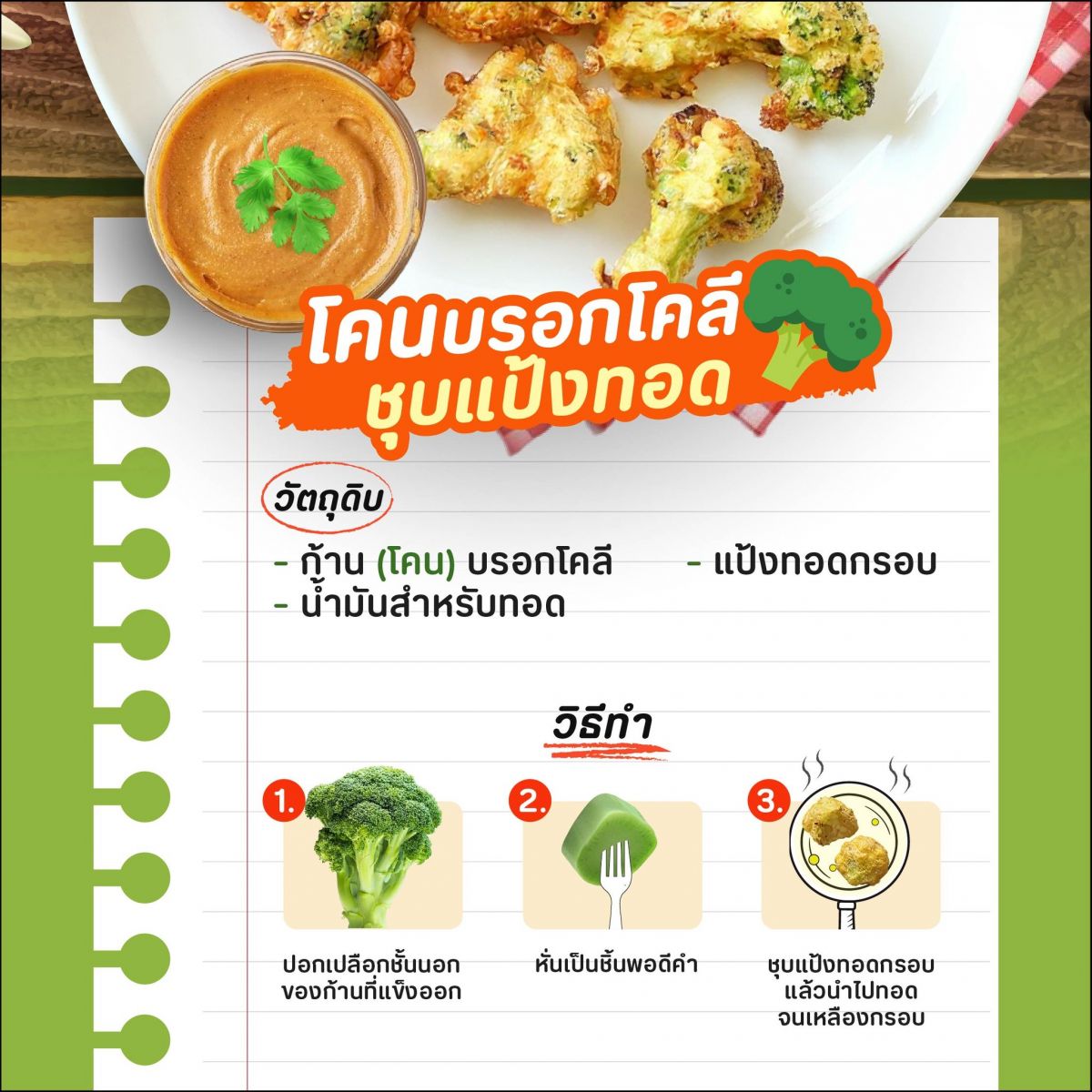 เมนูที่ 2 - โคนบรอกโคลีชุบแป้งทอด