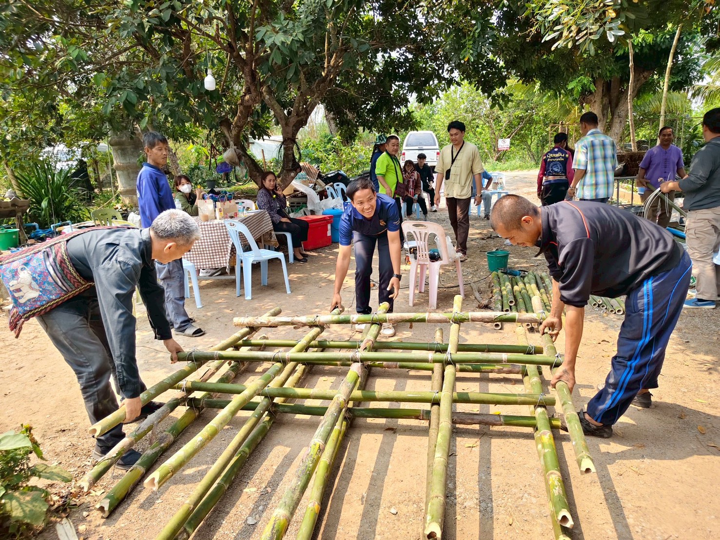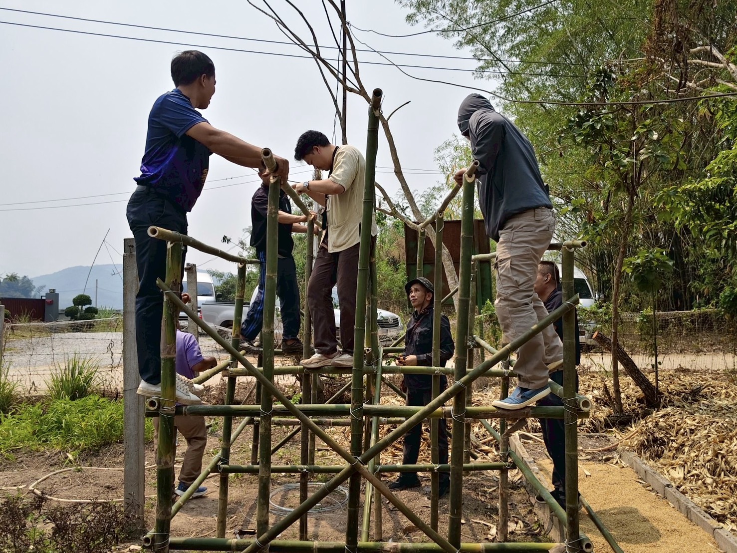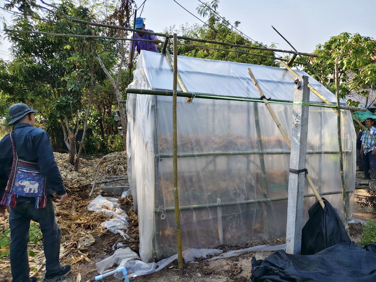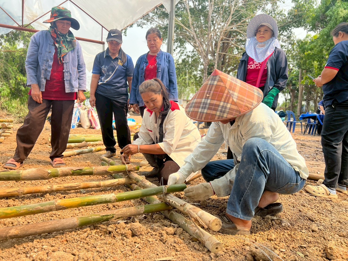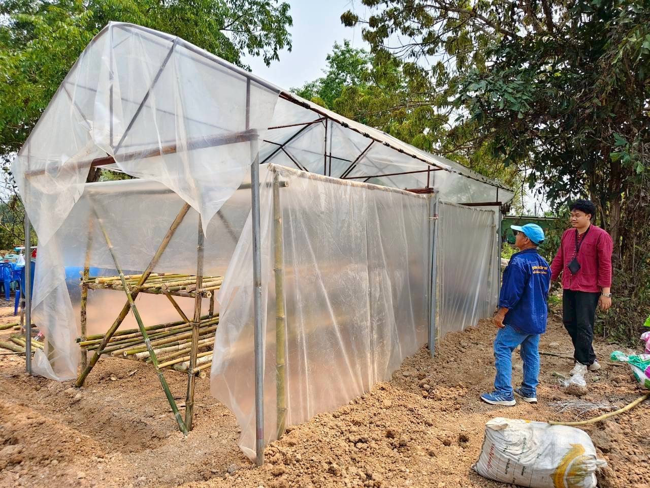 กิจกรรมนี้มุ่งเน้นการพัฒนาทักษะอาชีพให้แก่เกษตรกรในพื้นที่นำร่อง 4 ตำบลในอำเภอเวียงแก่น จัดทำโรงเรือนเห็ดลดเผา 8 ต้นแบบ ได้แก่ เกษตรกรบ้านขวากเหนือ บ้านท่าข้าม ในพื้นที่เทศบาลตำบลท่าข้าม เกษตรกรบ้านหล่ายงาว บ้านทุ่งทราย ในพื้นที่เทศบาลตำบลหล่ายงาว เกษตรกรบ้านม่วงยาย บ้านม่วง ในพื้นที่เทศบาลตำบลม่วงยาย เกษตรกรบ้านปอ บ้านปอกลางในพื้นที่เทศบาลตำบลปอ อำเภอเวียงแก่น จังหวัดเชียงราย ในการอบรมมีการถ่ายทอดองค์ความรู้ด้านการก่อสร้างโรงเรือนเพาะเห็ดด้วยวัสดุท้องถิ่น เช่น ไม้ไผ่ ซึ่งเป็นวัสดุที่หาได้ง่าย มีต้นทุนต่ำ และเหมาะสมกับบริบทของชุมชน พร้อมทั้งสาธิตขั้นตอนการออกแบบและลงมือปฏิบัติจริง รวมถึงการสาธิตการเพาะเห็ดจากวัสดุเหลือใช้ทางการเกษตร ได้แก่ เปลือกข้าวโพด เพื่อเพิ่มทางเลือกในการใช้ทรัพยากรอย่างคุ้มค่า เน้นการนำวัสดุเหลือใช้ มาเป็นวัตถุดิบในการเพาะเห็ดฟางในโรงเรือน ซึ่งเป็นแนวทางที่ช่วยลดการเผาในพื้นที่การเกษตร อันเป็นสาเหตุสำคัญของปัญหาไฟป่าและหมอกควัน รวมถึงช่วยลดปริมาณฝุ่นละอองขนาดเล็ก (PM2.5) ในพื้นที่ นอกจากนี้ ยังเป็นการส่งเสริมอาชีพและสร้างรายได้เสริมให้กับครัวเรือนในชุมชน ผ่านการพัฒนาเป็นแหล่งเรียนรู้ต้นแบบระดับท้องถิ่น ที่สามารถขยายผลสู่ชุมชนอื่นได้ในอนาคต