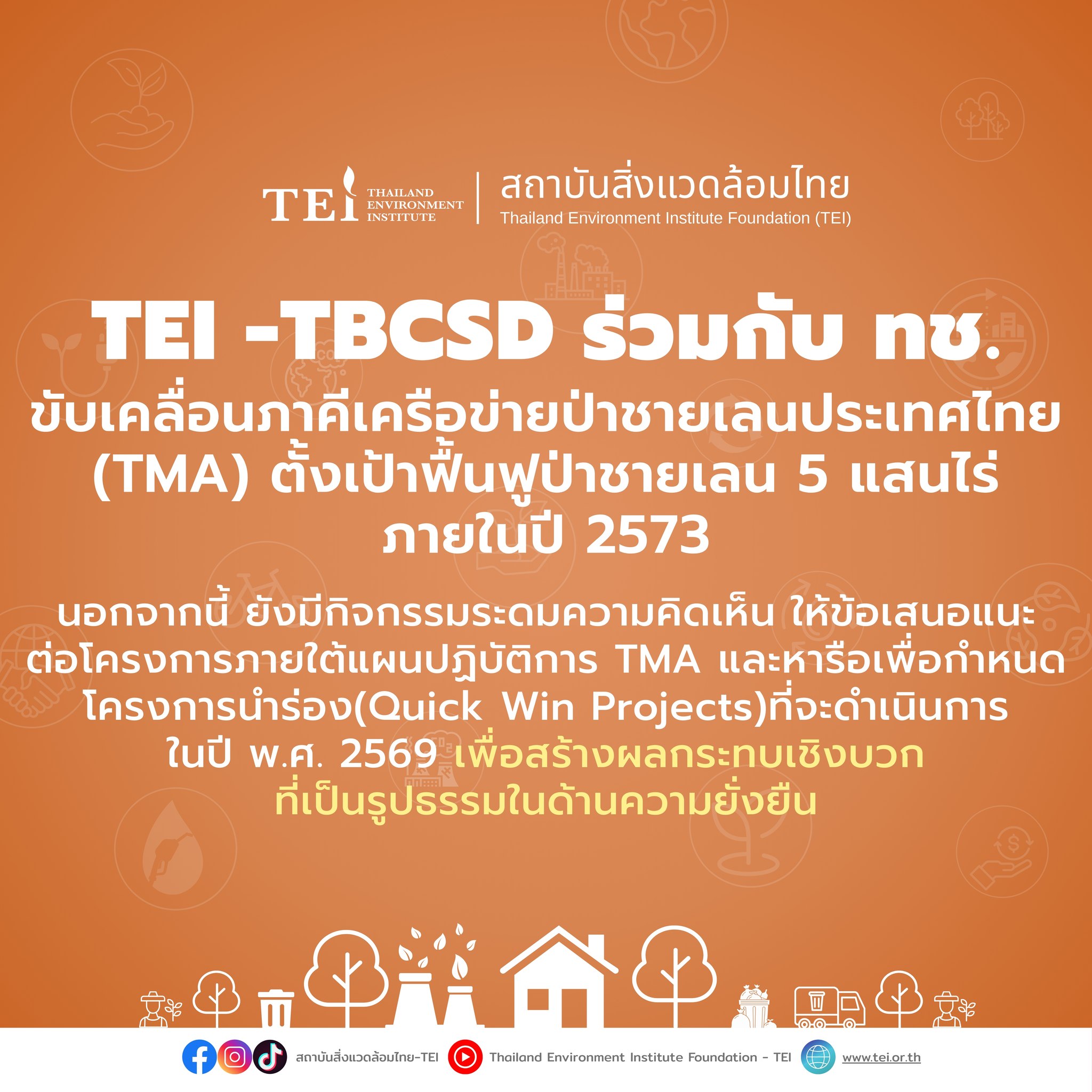 TEI -TBCSD ร่วมกับ ทช. ขับเคลื่อนภาคีเครือข่ายป่าชายเลนประเทศไทย (TMA) ตั้งเป้าฟื้นฟูป่าชายเลน 5 แสนไร่ ภายในปี 2573