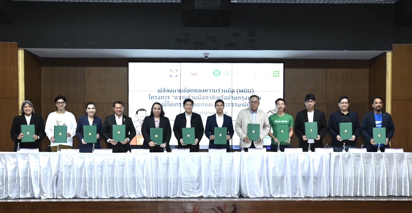 กรุงเทพมหานคร ร่วมลงนามบันทึกข้อตกลงความร่วมมือ (MOU) กับ 12 ภาคีเครือข่าย สนับสนุนการดำเนินงานโครงการ "ความร่วมมือภาคีเครือข่ายกรุงเทพฯ บ้านนี้ไม่เทรวม : แยกขยะลดค่าธรรมเนียม"