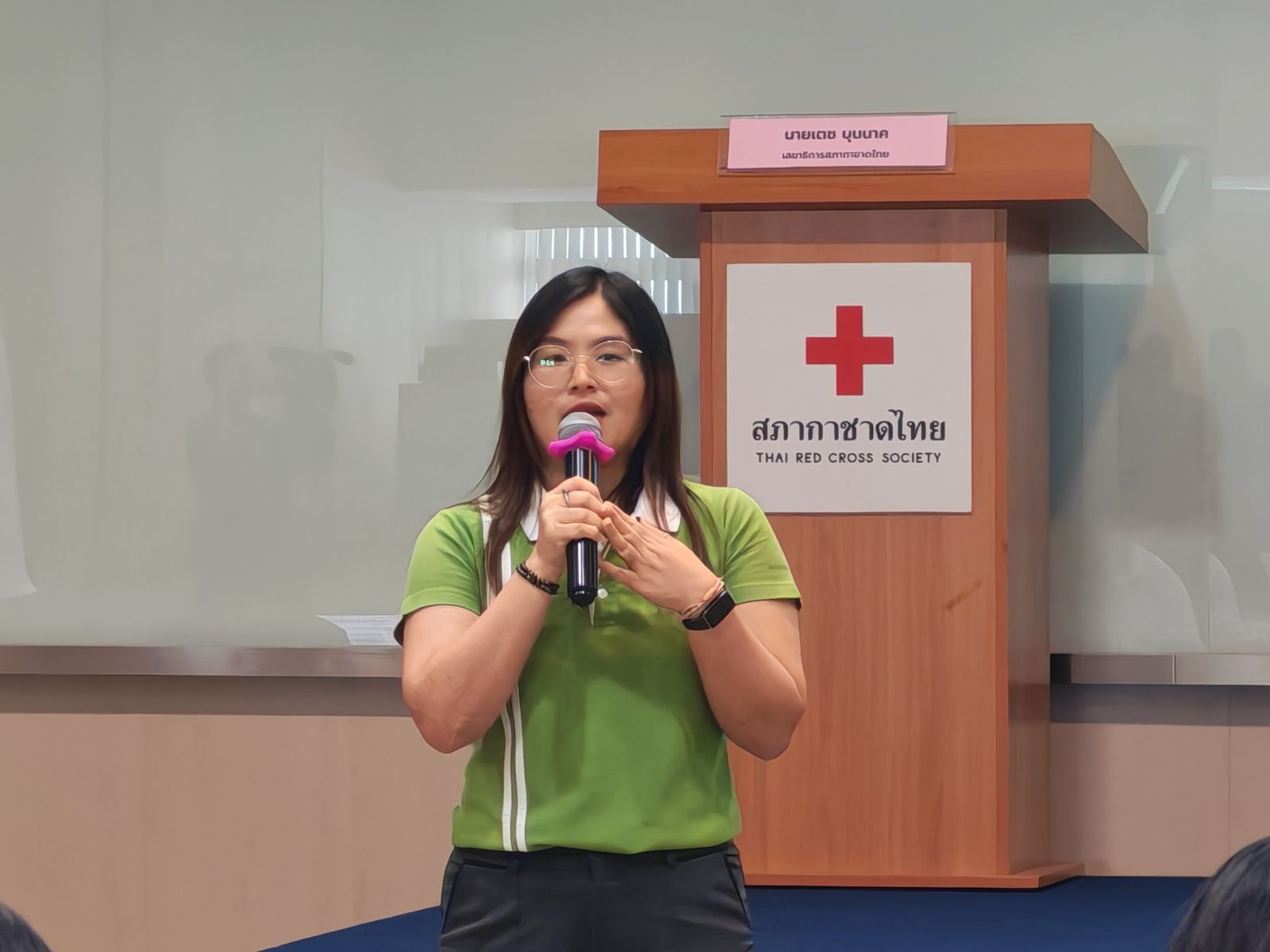 คุณนวลพรรณ คณานุรักษ์ นักวิจัยโครงการ ได้ให้ข้อมูล "Green" Red Cross for Sustainability พร้อมชวนบุคลากรกาชาดร่วมกันมีส่วนร่วมในการดูแลรักษาพื้นที่ในสำนักงานผ่านการให้ความรู้การคัดแยกและจัดการขยะอย่างถูกต้องตามหลักวิชาการ ผ่านกิจกรรมสร้างสรรค์วงล้อคัดแยก เพื่อย้ำเตือนถึงพฤติกรรมการรักษาสิ่งแวดล้อมในชีวิตประจำวัน ซึ่งสอดคล้องกับนโยบายวัฒนธรรมองค์กรสีเขียวที่สภากาชาดไทยมุ่งมั่นผลักดันให้เกิดขึ้นอย่างเป็นรูปธรรม