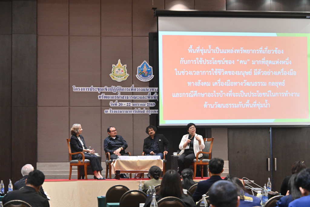 20-22 มกราคม 2569 กรมทรัพยากรน้ำจัดประชุมเชิงปฏิบัติการเพื่อวางแนวทางการบริหารจัดการทรัพยากน้ำสาธารณะและพื้นที่ชุ่มน้ำ โดยมีนายธีระชุณ บุญสิทธิ์ อธิบดีกรมทรัพยากรน้ำ (ทน.) เป็นประธานกล่าวเปิดงาน ในการนี้ สถาบันสิ่งแวดล้อมไทย หรือ TEI โดย ดร.เบญจมาส โชติทอง ได้รับเชิญเป็นวิทยากรร่วมอภิปรายหัวข้อ การเปิดพื้นที่ทำงาน ”พื้นที่ชุ่มน้ำกับมิติทางวัฒนธรรรม ภายใต้แนวคิด Wetland and knowledge : Celebrating cultural heritage" ชี้ให้เห็นถึงสถานการณ์พื้นที่ชุ่มน้ำไทยถดถอยจากการพัฒนาเมือง โครงสร้างพื้นฐาน และชนิดพันธุ์ต่างถิ่นรุกราน