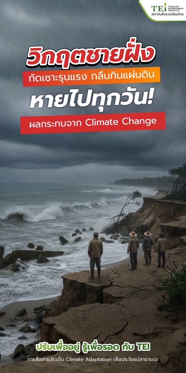 - กระทบผู้คนกว่า 12 ล้านคน: ชุมชนชายฝั่ง (เช่น อ.หัวไทร จ.นครศรีธรรมราช บางขุนเทียน กทม. หรือพระสมุทรเจดีย์ จ.สมุทรปราการ กำลังสูญเสียที่อยู่อาศัย ที่ทำกิน และต้องอพยพย้ายถิ่นฐาน วิถีชีวิตดั้งเดิมกำลังหายไป