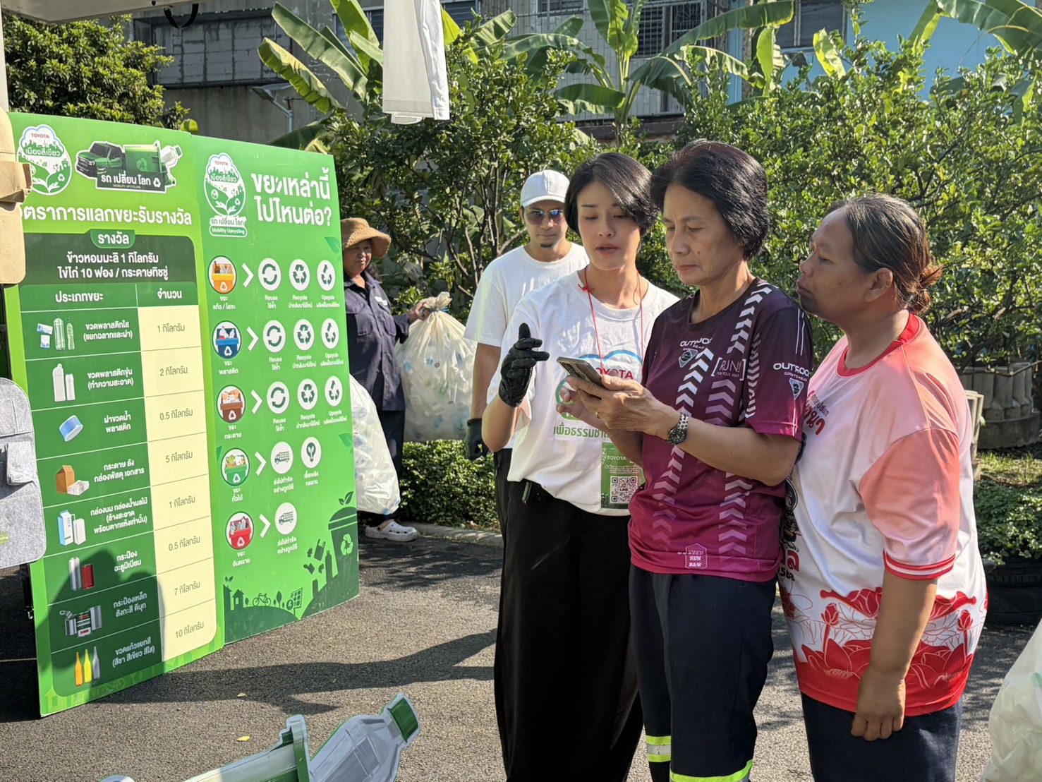 นอกจากนี้ กิจกรรม “รถ เปลี่ยน โลก” ยังมุ่งเน้นการถ่ายทอดองค์ความรู้แก่ประชาชนเกี่ยวกับการคัดแยกขยะอย่างถูกวิธี การเพิ่มคุณค่าให้กับวัสดุเหลือใช้ และกระบวนการนำขยะเข้าสู่การแปรรูปเป็นผลิตภัณฑ์ที่สามารถใช้ประโยชน์ในชีวิตประจำวันได้จริง ควบคู่กับการสร้างแรงจูงใจเชิงบวก โดยเปิดโอกาสให้ประชาชนทั่วไปนำขยะรีไซเคิลที่สะอาดมาแลกรับของรางวัล เช่น ข้าวหอมมะลิ ไข่ไก่ และของอุปโภคบริโภค โดยตลอดระยะเวลาจัดกิจกรรมสามารถรวบรวมขยะรีไซเคิลได้มากกว่า 10 ตัน ช่วยลดการปล่อยก๊าซเรือนกระจกได้มากกว่า 15 ตันคาร์บอนไดออกไซเทียบเท่า ทั้งนี้ เพื่อส่งเสริมพฤติกรรมการจัดการขยะที่เหมาะสม ซึ่งสอดคล้องกับแนวคิดเศรษฐกิจหมุนเวียน และสนับสนุนการพัฒนาที่ยั่งยืนในระยะยาว