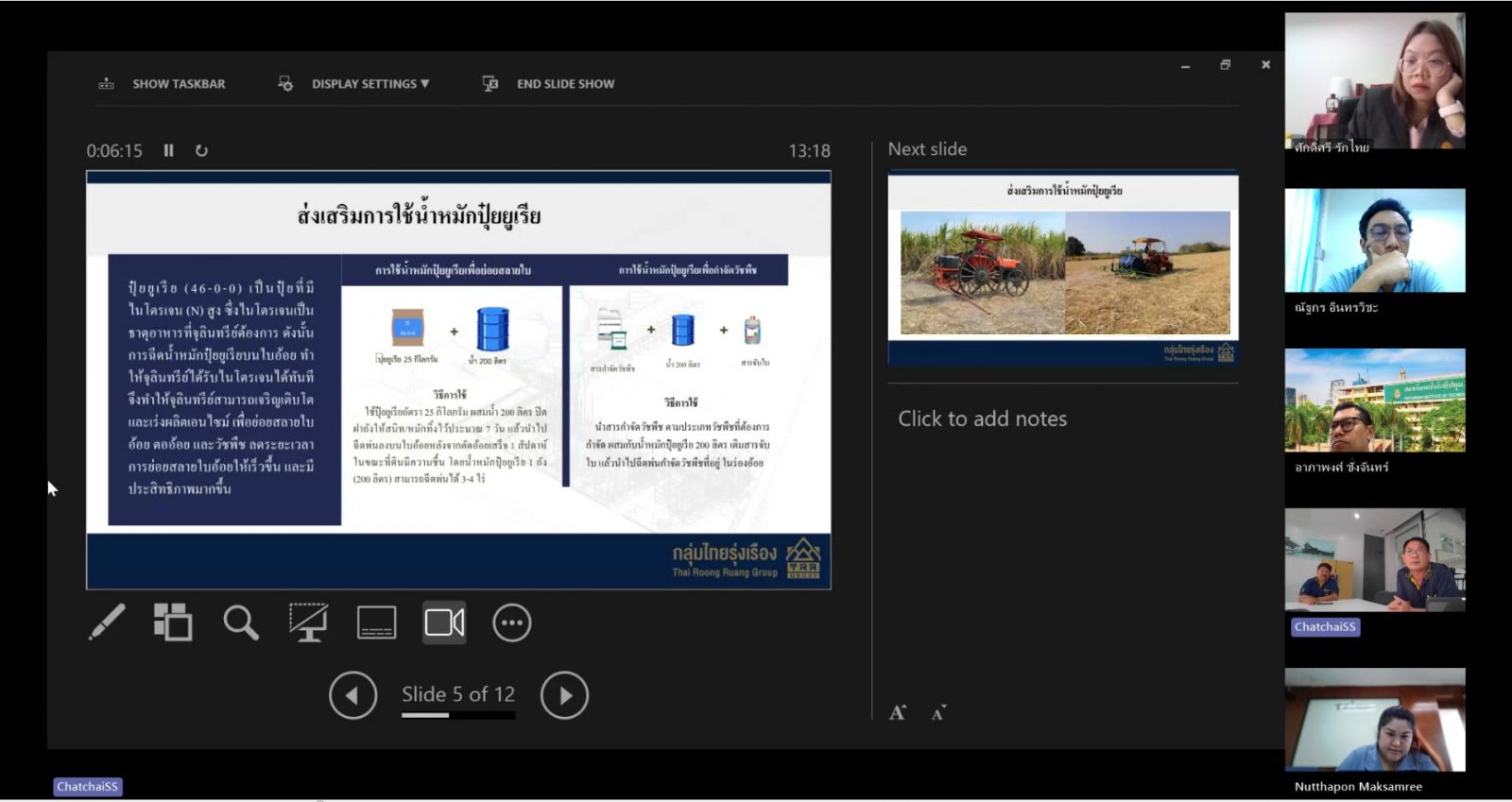 26 กันยายน 2568 คณะนักวิจัยจากสถาบันสิ่งแวดล้อมไทย และสถาบันเทคโนโลยีปทุมวัน โดยได้รับการสนับสนุนทุนอุดหนุนการวิจัยและนวัตกรรมจาก สำนักงานการวิจัยแห่งชาติ (วช.) ได้จัดการประชุมศึกษาและแลกเปลี่ยนเรียนรู้ ภายใต้โครงการ “พัฒนาและขยายเครือข่ายเกษตรกรสู่การจัดการวัสดุเหลือใช้ทางการเกษตรอย่างยั่งยืน กรณีศึกษาการจัดการใบอ้อยในจังหวัดลพบุรี” ในการประชุมครั้งนี้จัดขึ้นในรูปแบบออนไลน์ โดยได้รับความอนุเคราะห์จาก โรงงานน้ำตาลกลุ่มบริษัทไทยรุ่งเรือง (โรงงานน้ำตาลสระบุรี) ซึ่งมีบทบาทสำคัญในฐานะผู้ผลิตอ้อยและน้ำตาลรายใหญ่ของประเทศ และเป็นองค์กรที่มีแนวปฏิบัติด้านการจัดการวัตถุดิบและสร้างสัมพันธ์กับเครือข่ายเกษตรกร