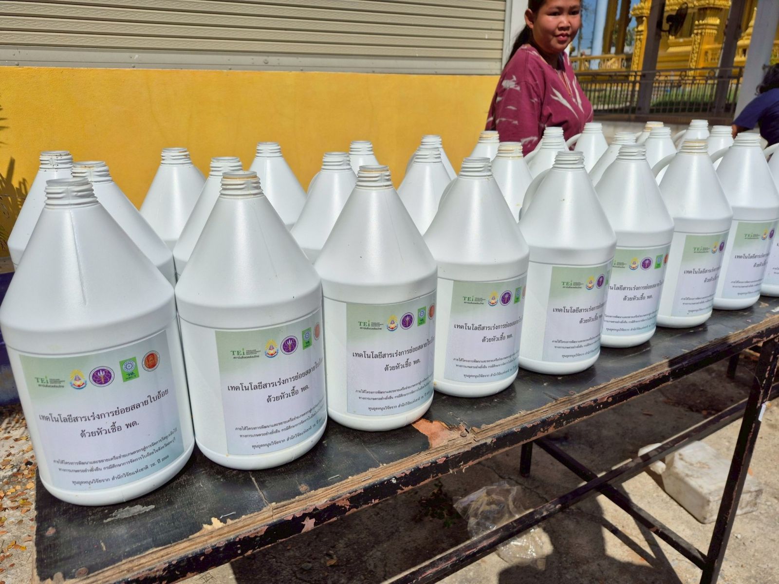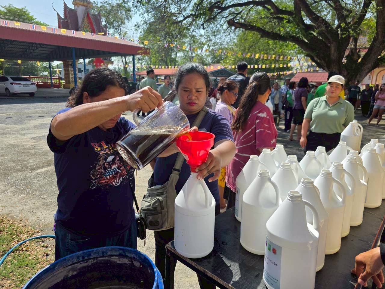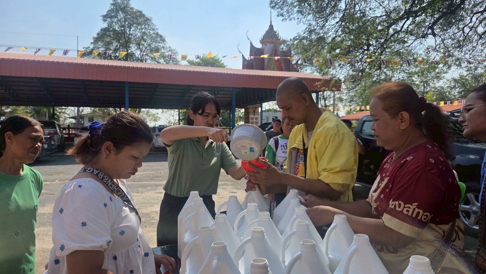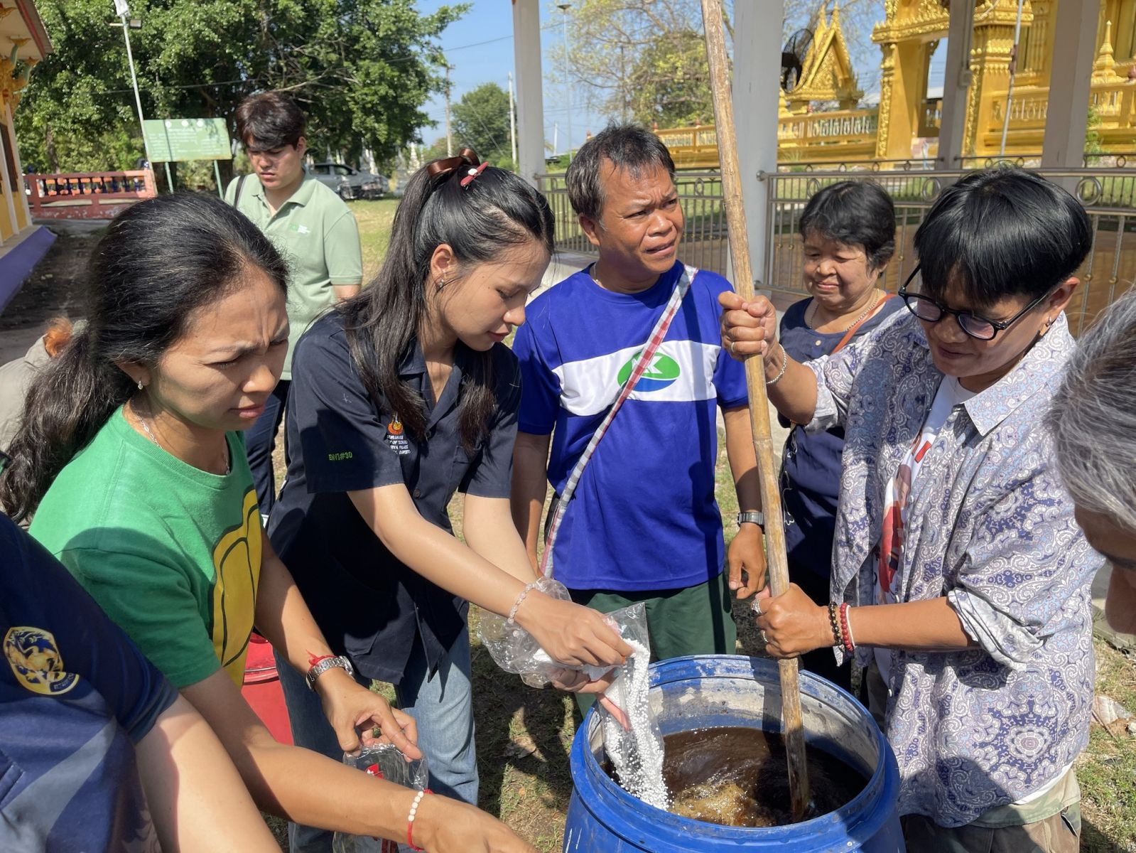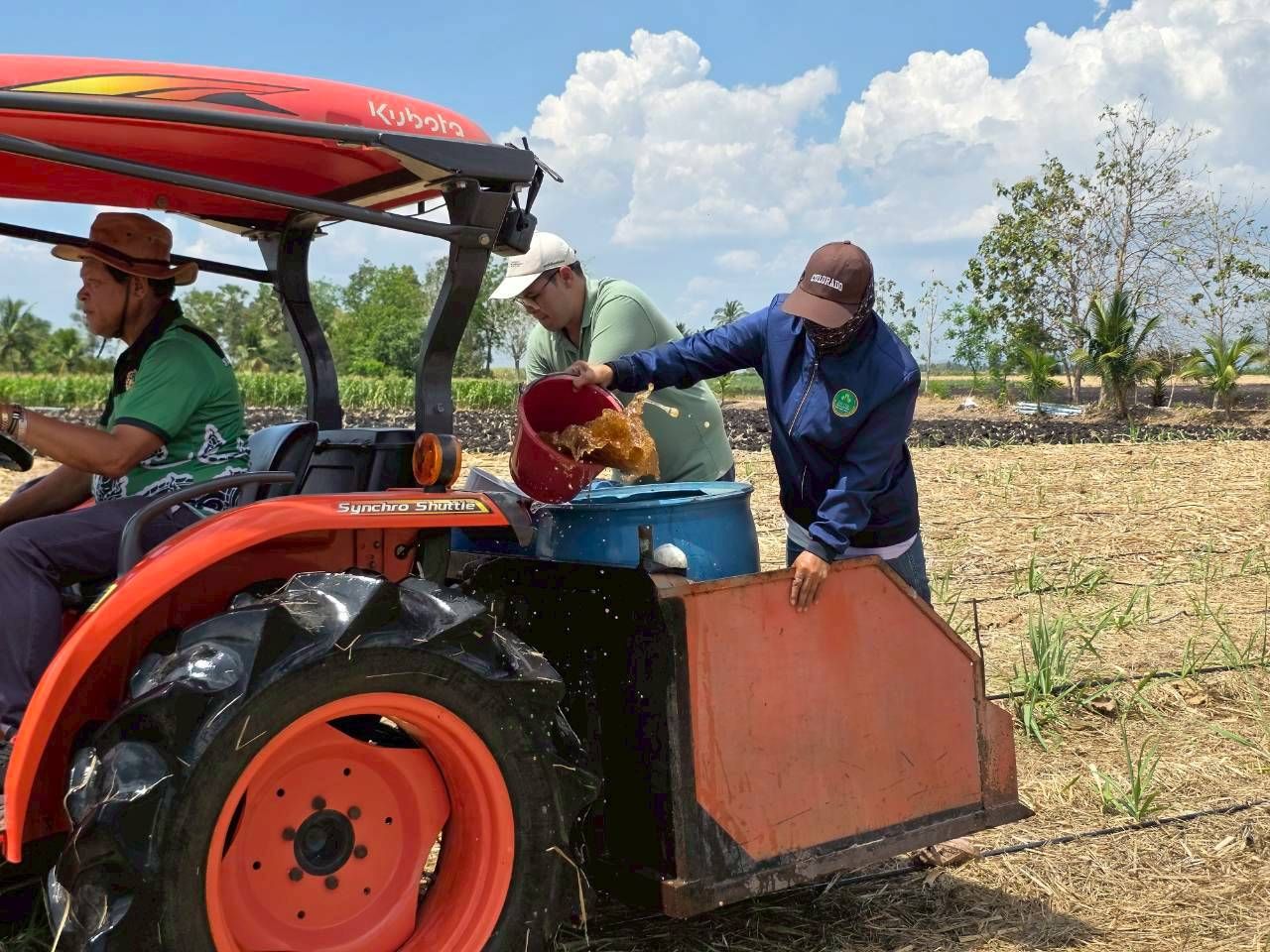 และได้รับเกียรติจาก เจ้าหน้าที่จากหน่วยงานที่เกี่ยวข้องในพื้นที่ อาทิ เกษตรอำเภอ สาธารณสุขอำเภอ ร่วมกิจกรรมถ่ายทอดองค์ความรู้การจัดการวัสดุเหลือใช้ทางการเกษตรอย่างยั่งยืน ที่ทีมวิจัยจัดฐานกิจกรรมให้เกษตรกรชาวไร่อ้อยบ้านน้ำสุด ร่วม 80 คน ได้ทดลองผสมเทคโนโลยีการใช้จุลินทรีย์ย่อยสลายใบอ้อยในแปลงจริง เพื่อสร้างการยอมรับและมั่นใจว่าเทคโนโลยีนี้สามารถทำได้ง่ายและเห็นผลลัพธ์ที่คุ้มค่ากว่าการเผา